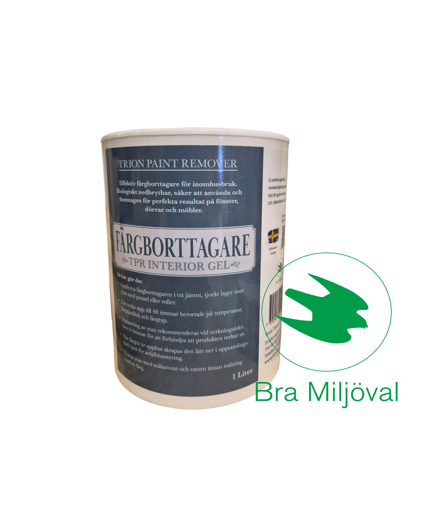 Effektiv färgborttagare för inomhusbruk. Biologiskt nedbrytbar, säker att använda och framtagen för perfekta resultat på fönster, dörrar och möbler. Märkt med Bra Miljöval.